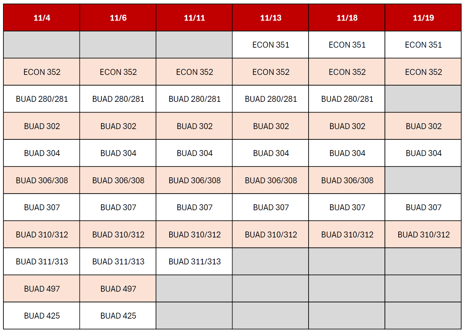 BUAD 305: Only open to transfer business and accounting majors. Marshall students should speak with their academic advisor.